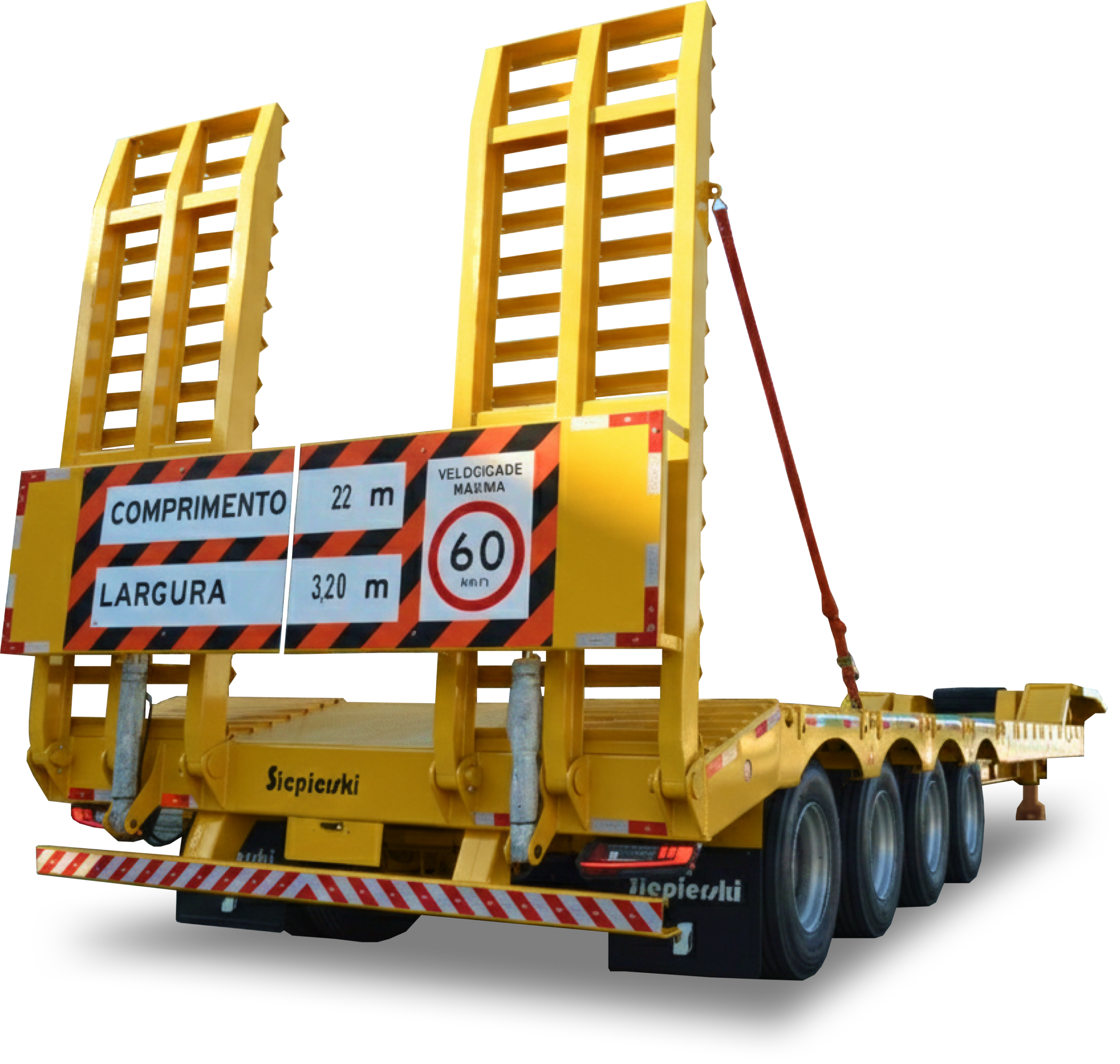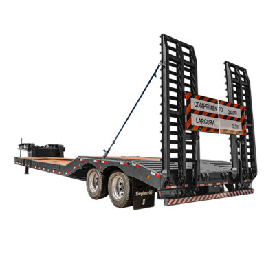 Estruturada com longarinas em viga “I” e travessas e perfis laterais em perfil “U”, confeccionada em chapa de aço estrutural que garante maior resistência com menor peso. Perfis dobrados a frio para atender todas as solicitações estáticas e dinâmicas. Pés de apoio reforçados, com levantamento manual. Para-barros de polipropileno. Porta estepe sobre o pescoço para um pneu. Pino rei ø 2” flangeado, conforme norma ABNT. Acoplamento adequado para veículos 6 x 2 / 6 x 4. Pára-choque fixo, homologado conforme resolução 593/16 – CONTRAN.